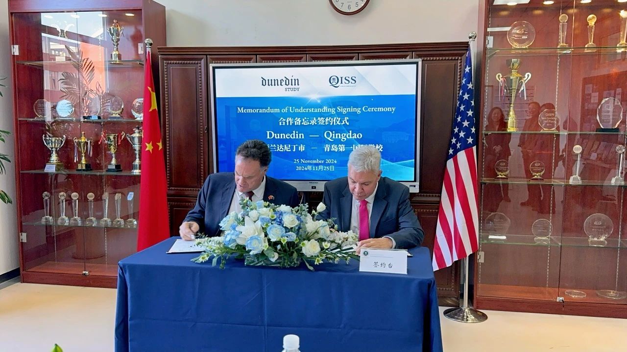 11月26日,新西蘭達(dá)尼丁市市長(zhǎng)Jules Radich率領(lǐng)代表團(tuán)訪問山東省青島第一國(guó)際學(xué)校。此次訪問旨在增進(jìn)兩市在教育領(lǐng)域的交流與合作,推動(dòng)雙方在多個(gè)方面的友好合作關(guān)系。青島市委外辦副主任丁安輝,青島城投集團(tuán)黨委委員、副總經(jīng)理殷淙出席活動(dòng)。(圖為簽約儀式的現(xiàn)場(chǎng)照片)在訪校過程中,殷淙代表青島城投集團(tuán)對(duì)Jules Radich市長(zhǎng)一行的到來表示了熱烈歡迎,闡釋了集團(tuán)對(duì)推動(dòng)兩市教育事業(yè)合作良好愿景,介紹了集團(tuán)在教育領(lǐng)域的投資